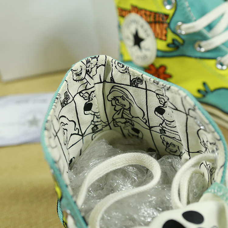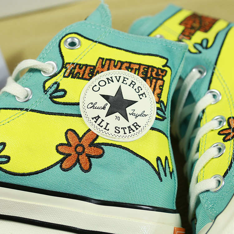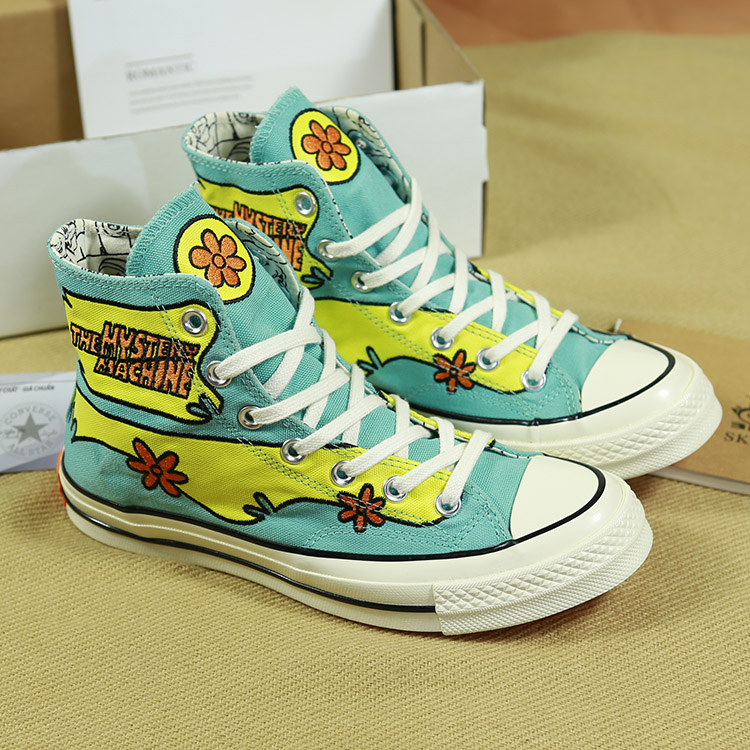 - Converse 1970s Scooby Doo với họa tiết chủ đạo là gam màu xanh và vàng tươi tắn mang đến một cảm giác mới mẻ và tươi mát