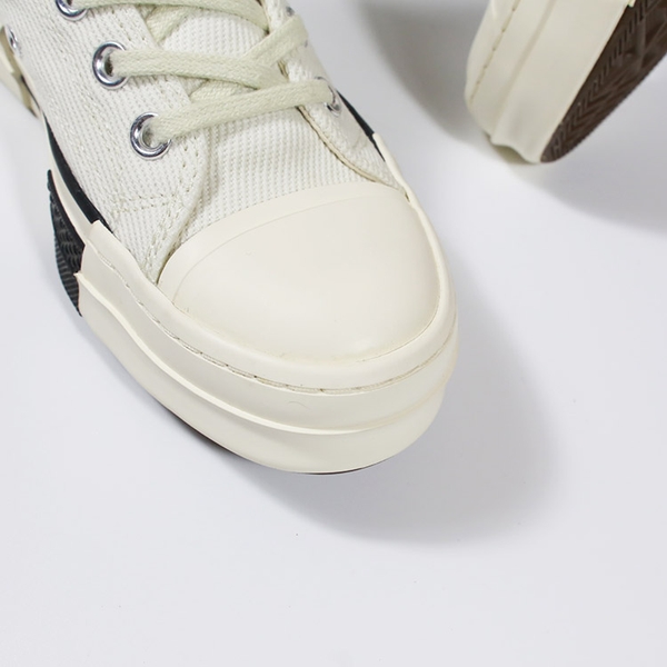 Phần khác biệt với phiên bản thứ 2 của Converse x DRKSHDW DRKSTAR này mà các bạn cũng dễ dàng nhận thấy chính là phần mũi giày. Nếu như trước đó mình đã mô tả phiên bản đầu tiên với mũi giày vuông vức thì với phiên bản thứ 2 này bạn sẽ thấy một form mũi tròn trịa vừa mang hơi hướng của Converse lại vừa mang phong cách của Rick Owen.